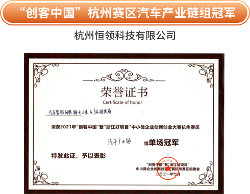 2.市级先进——2021年创客中国杭州赛区优胜奖、“创客中国”杭州赛区汽车产业链组冠军